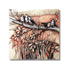 This set of cards are reproductions of original works created using etching or drawing. Earthy tones are used to illustrate habitat features. Fine drawn lines and details in the plants and birds are achieved best with this medium.