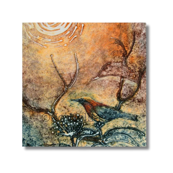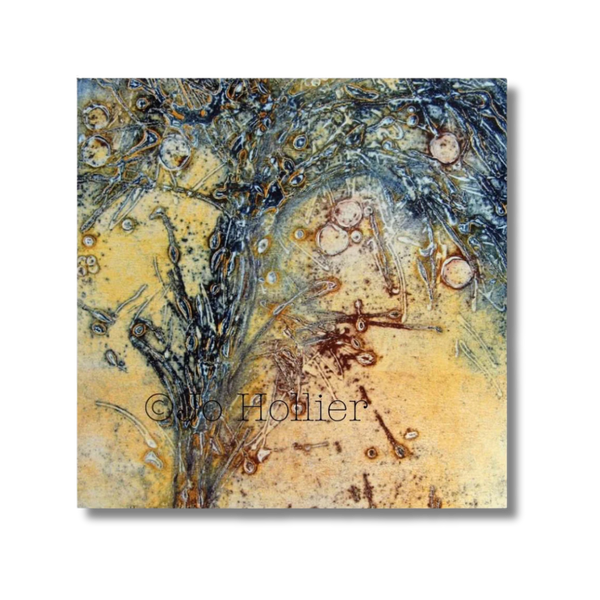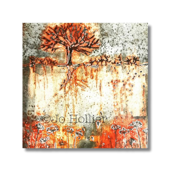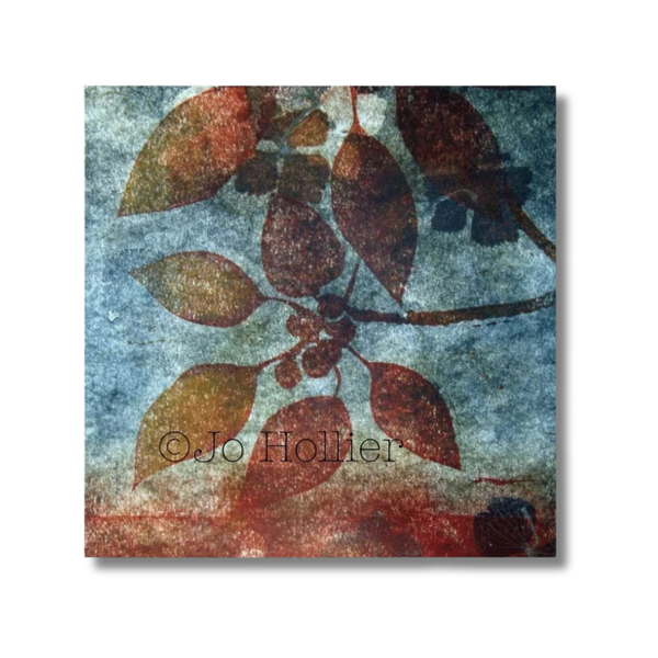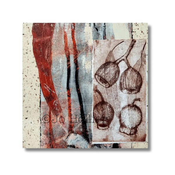 Through her work Jo explores painterly aspects of printmaking; experimenting with textures and colours. She manipulates the ink on the printing plate, combining techniques, mixing colour and adding texture and depth through collaged papers.